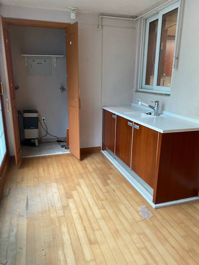 구축 1층 아파트로, 거실과 침실을 제외한 나머지 발코니는 이미 확장되어 있었어요.