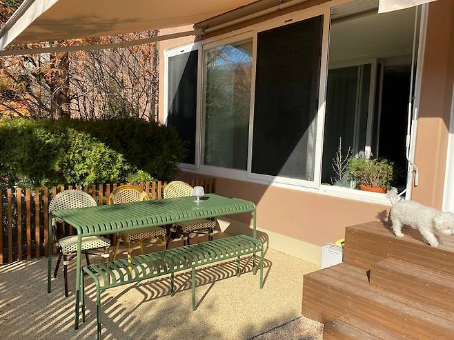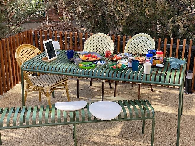 제가 이곳으로 이사 오고서 가장 행복하게 느끼는 건, 주말 아침 가족들과 정원에서 아침을 먹는 일입니다.