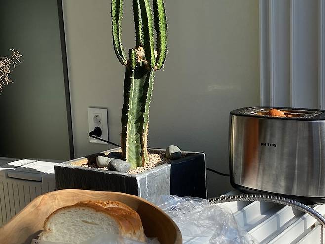 오래오래 놀며, 얘기하며 먹는 아침식사예요. 저희 집은 1층이라고 하기엔 바깥과 단차가 꽤나 높아서 아래에서는 저희 집 정원이 잘 보이지 않아요. 그래서 다들 부스스한 잠옷 차림으로 식사를 하곤 해요.