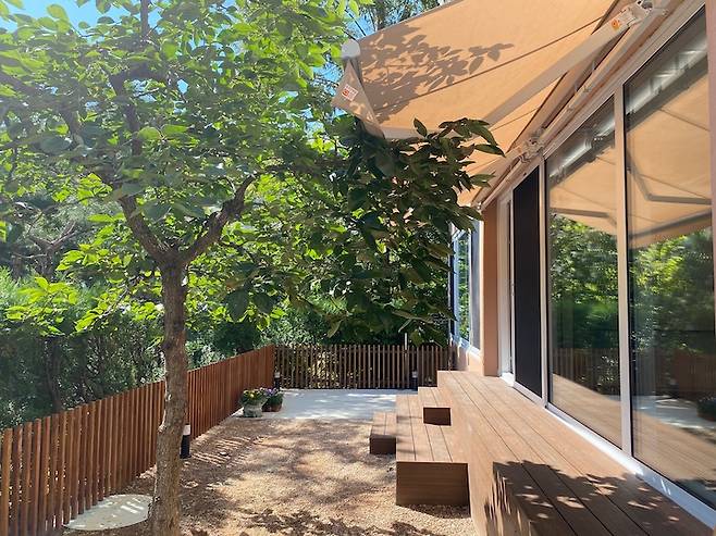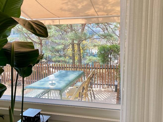 어닝을 쳐도 채광이 좋아요. 1층 집이지만 채광이 좋다는 건 너무 큰 행운이지요.