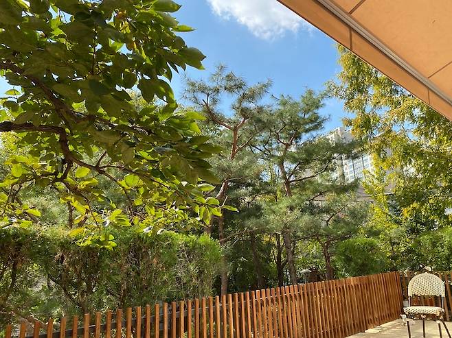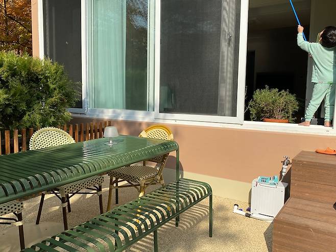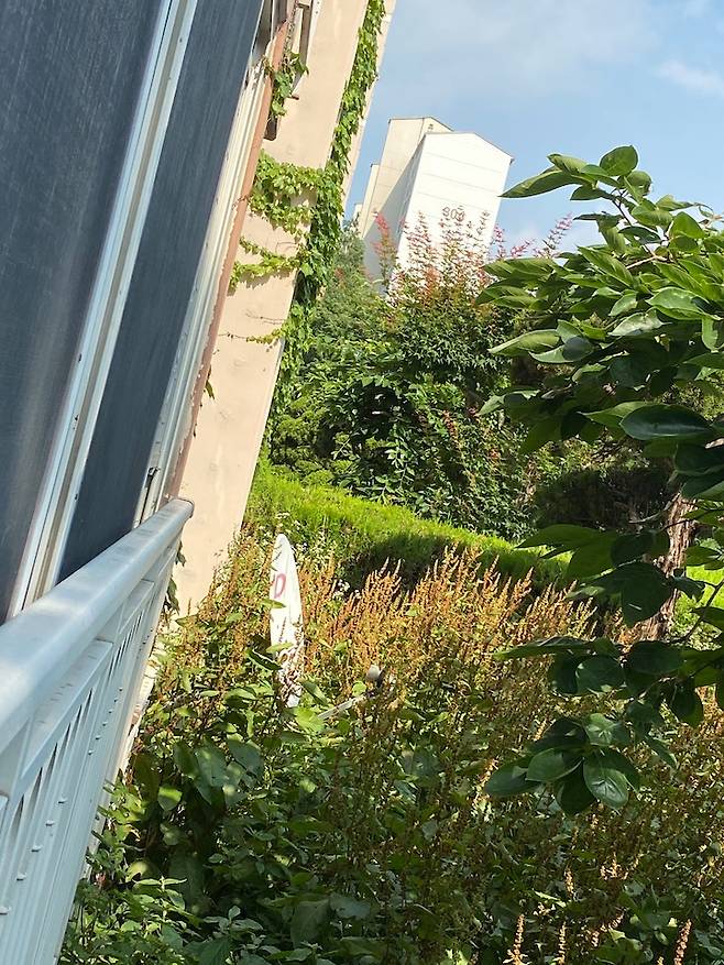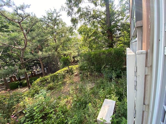 다용도실에서 보이는 뷰도 참 예뻐요. 1층 아파트에서 누리는 낭만이지요.