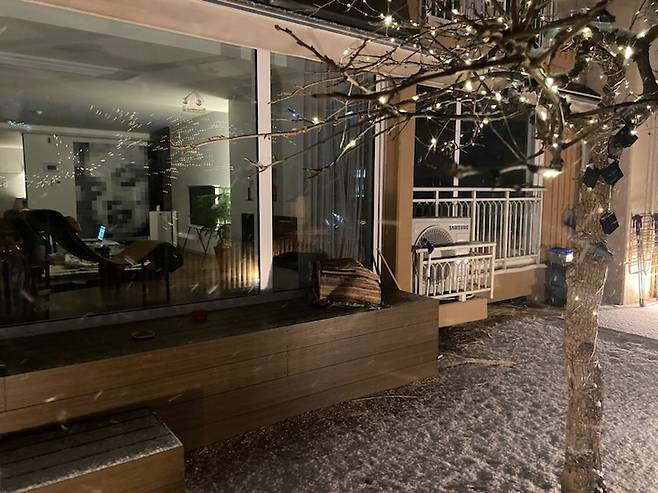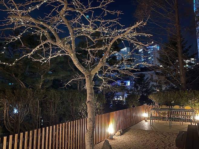 이파리가 다 떨어지고 앙상해진 가지만 남는 겨울은 왠지 아쉬워 크리스마스 트리 대신 감나무와 향나무에 전구를 감아줬어요. 태양열로 낮에 잔뜩 충전했다 어두워지면 저절로 켜지는 거라 밤이 되면 은은하게 반짝이는 감나무가 참 예뻐요.