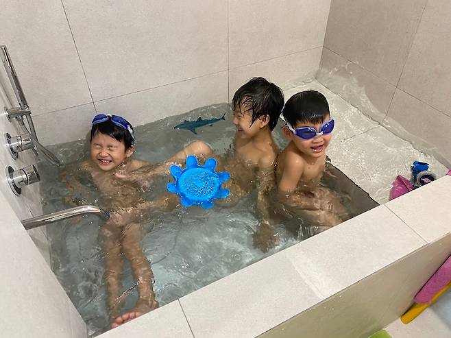 욕조는 반신욕이 가능하게 단차를 두었고 물을 깊게 넣을 수 있도록 깊이 있게 만들어 아이들은 또 다른 놀이터처럼 생각하기도 해요.