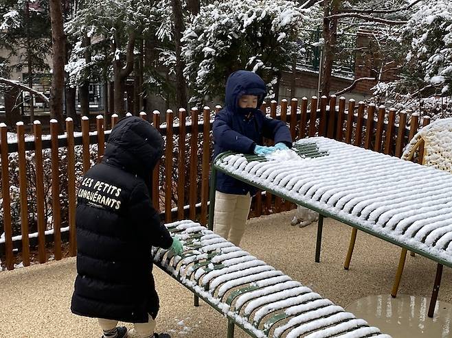 겨울은 정원을 자주 사용하지 못하지만, 눈이 오는 날엔 아이들은 또 신이 나지요. 강아지도 눈밭을 폴짝폴짝 뛰어다니다 들어오기도 해요.