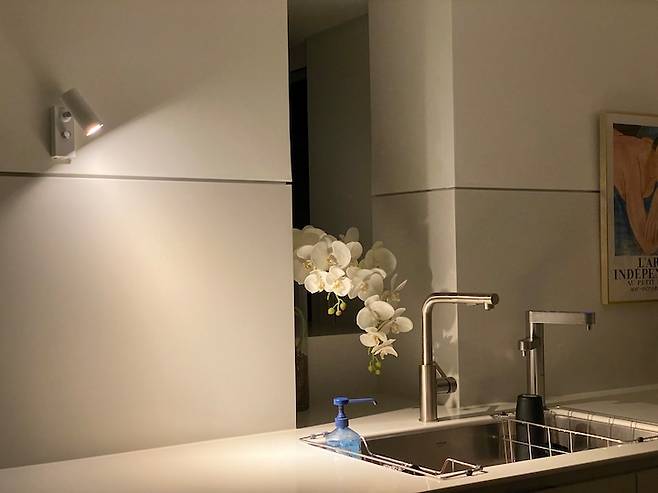 밤에는 조도 조절이 되는 벽등만 켜두고 생활해요. 작지만 제 역할을 다 해내는 녀석입니다.