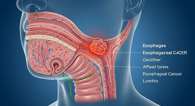 식도암은 입과 위를 연결하는 식도에 발생하는 악성 종양입니다. 식도의 내벽을 구성하는 세포에서 주로 발생하며, 편평세포암과 샘암종이 가장 흔한 유형입니다. 우리나라에서는 편평세포암이 전체 식도암의 약 95%를 차지하고 있으며, 주로 60대 이상 남성에게서 많이 발생합니다.