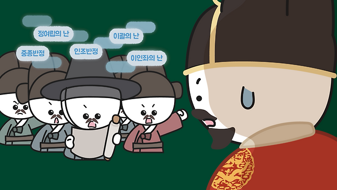 그리고 반란이 일어났다고 해도 그 규모가 대체로 작았는데, 19세기 전반 홍경래의 난이 일어나기 전까지 조선 정부가 마주한 반란은 주로 서울의 권력자 또는 서울 권력자 관련 인물이 일으킨 쿠데타 성격의 반란이었습니다.