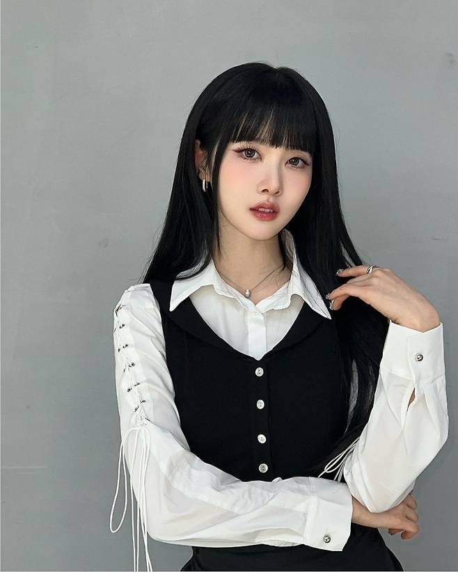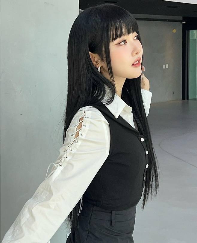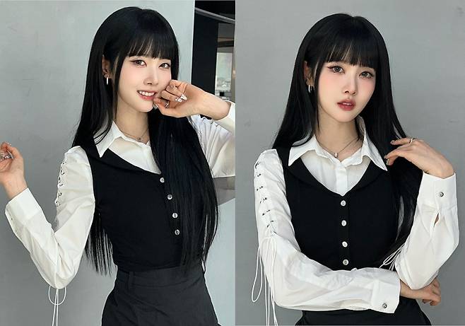 시은은 화이트 셔츠에 블랙 베스트를 레이어드해 심플하면서도 세련된 패션을 선보였습니다.