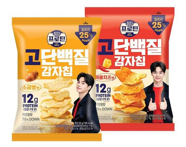 롯데웰푸드는 단백질 전문 브랜드 이지프로틴 라인업으로 감자칩 제품 ‘고단백질 감자칩’을 출시했다. 감자 스낵인 이지프로틴 고단백질 감자칩은 오븐에 구워 기름기는 쏙 뺐지만 감자의 고소한 풍미는 그대로 살린 것이 특징이다. 50g 용량 한 봉지에 달걀 2개 분량인 12g의 단백질을 함유한 고단백 스낵이다. 동일한 용량의 일반 스낵 대비 칼로리와 지방 함량도 낮췄다. 편의점 기준 판매가는 봉지당 2,500원이다.