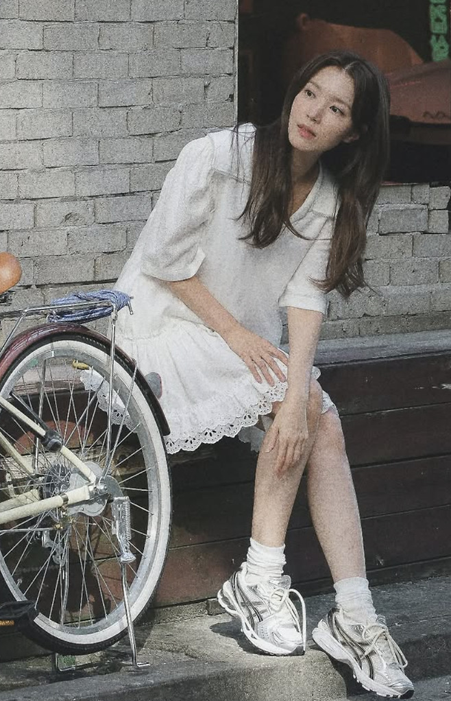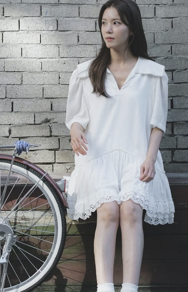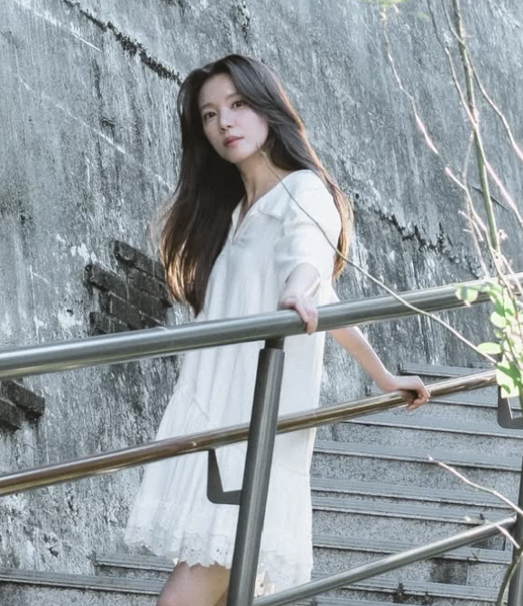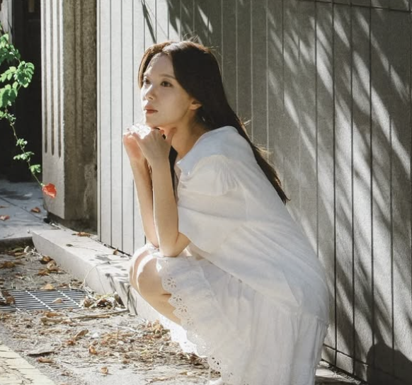 또한 화이트 컬러 특유의 청순함이 돋보이며, 자연스럽게 흘러내리는 긴 머리와 은은한 메이크업이 그녀의 동안 미모를 더욱 빛나게 한다.