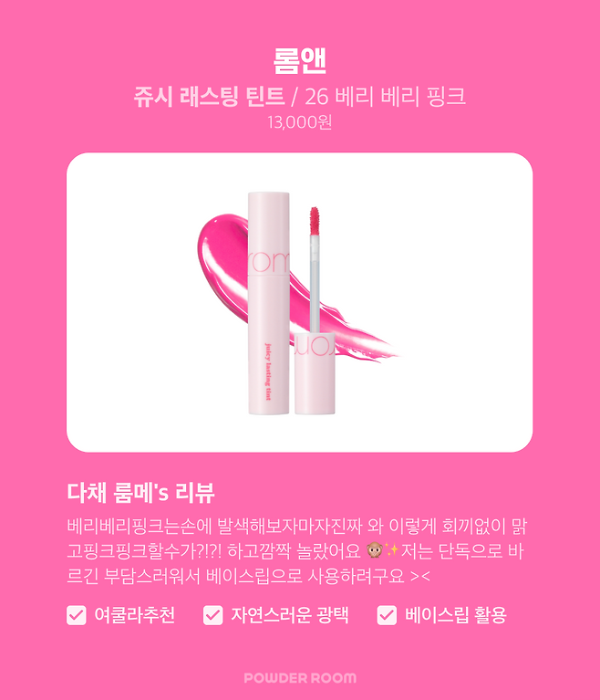 롬앤 여쿨 틴트 안 좋아하는 거,
