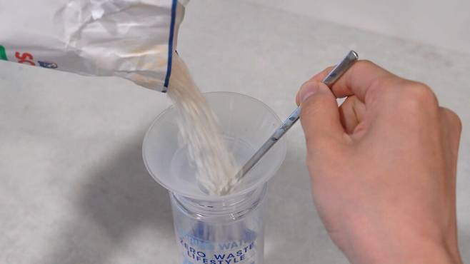 이럴 땐 깔때기에 젓가락을 꽂은 후 내용물을 부어 보세요. 그러면 젓가락을 타고 흘러 막히지 않고 쉽게 옮겨 담을 수 있습니다.