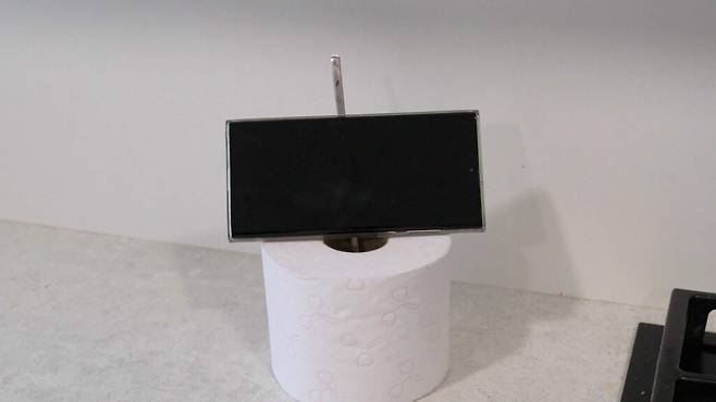 젓가락 부분에 스마트폰을 거치해 두세요. 그러면 쉽게 이동할 수 있는 스마트폰 거치대가 완성됩니다. 크기도 작아 여기저기 옮기기 참 편해요.