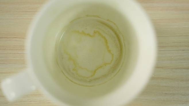 먼저 이건 녹차를 마시고 난 머그컵이에요. 녹차를 오랫동안 담아두면 이런 때가 생겨서 잘 지워지지 않을 때가 있어요.