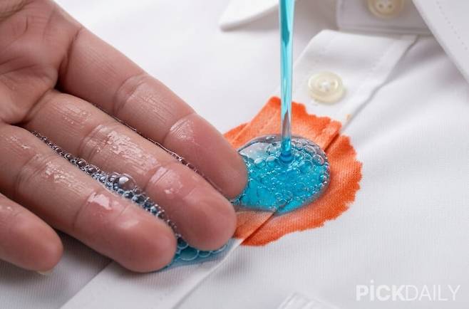 짬뽕국물 얼룩 제거의 첫 단계는 기름 성분을 분해하는 것이다. 바로 세탁기에 넣기보다는 부분 세척을 해주는 것이 좋다. 먼저 미지근한 물 1컵에 식초 1큰술, 주방세제 1큰술을 넣고 섞는다. 깨끗한 수건이나 면 패드를 용액에 적셔 얼룩 부위를 톡톡 두드리며 닦아낸다.