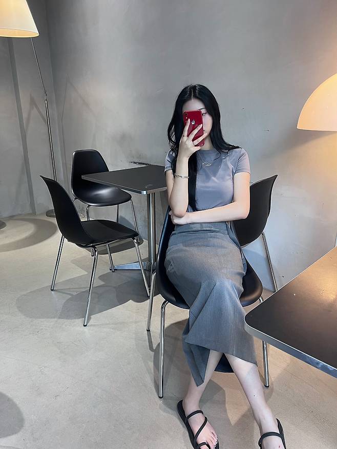 이 코디의 핵심은 바로 치마의 핏입니다.