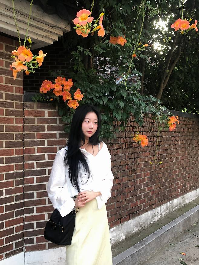 행궁동처럼 예쁜 카페가 많은 거리에서 사진 찍기에 이보다 더 완벽한 코디는 없을 거예요.