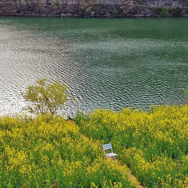 꽃과 저수지 사이, 잠시 멈춰 앉아 한옥 카페 바실라에서 여유를 마셔보는 건 어떨까.