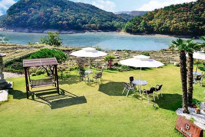 꽃과 저수지가 감싼 한옥 카페, 바실라