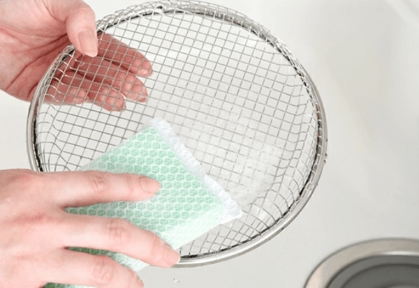 뜰채는 일반 수세미나 주방세제로 문질러도 표면만 닦인 것처럼 보일 뿐, 미세한 망 사이에 남은 때는 완전히 사라지지 않을 수 있다. 세제가 기름기를 녹여도 망 안쪽에 낀 음식물 단백질과 전분 찌꺼기, 그리고 건조되며 남은 물때는 쉽게 떨어지지 않는다. 게다가 뜰채는 구조상 물이 오래 머물기 쉬워 세척 후에도 습기가 남는다. 이 잔여 수분이 반복되면 눈에 잘 보이지 않는 미세 곰팡이와 세균막이 생긴다. 사용자는 “깨끗하게 닦았다”고 생각하지만 실제로는 위생 상태가 충분히 회복되지 않는 경우가 많다.