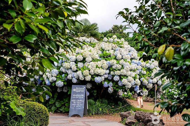 많은 이들이 카멜리아 힐을 '동백의 정원'이라 기억해요.겨울이 끝나갈 무렵 붉은 동백이 수줍게 피어나면서 시작된 이 정원의 계절은,봄이 되면 더 다채롭게 변합니다.4월과 5월에는 수국, 금낭화, 양귀비 등 봄꽃들이 순차적으로 피어나며,정원 전체가 파스텔톤 물감을 풀어놓은 듯한 분위기로 가득해져요.