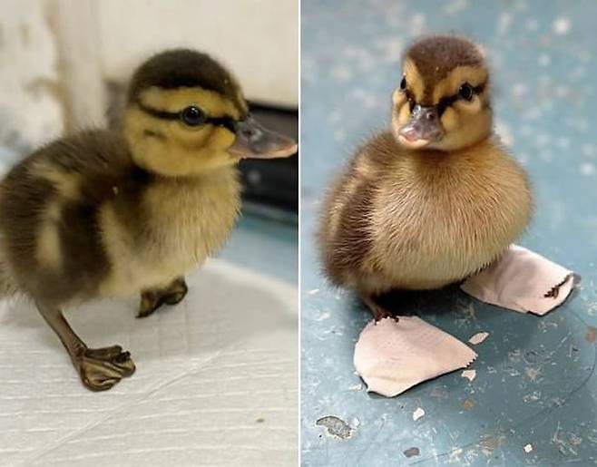발가락이 안쪽으로 말려 걸을 때마다 발등으로 땅을 디디는 아기 오리의 모습은 보는 사람마저 마음이 아플 정도였는데요.