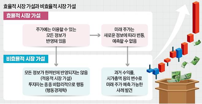 유진 파마 시카고대 교수는 1970년 발표한 논문 ‘효율적 자본시장’에서 효율적 시장 가설을 제시했다. 이 가설은 합리적 기대 이론에 바탕을 두고 있다. 합리적 기대 이론에 따르면 경제 주체들은 활용할 수 있는 모든 정보를 이용해 미래를 예측한다. 이를 주식시장에 적용하면 투자자는 공개된 모든 정보를 바탕으로 투자 결정을 내린다고 할 수 있다. 즉 현재 시점에서 알려진 모든 정보가 주가에 반영돼 있다는 것이 효율적 시장 가설이다.