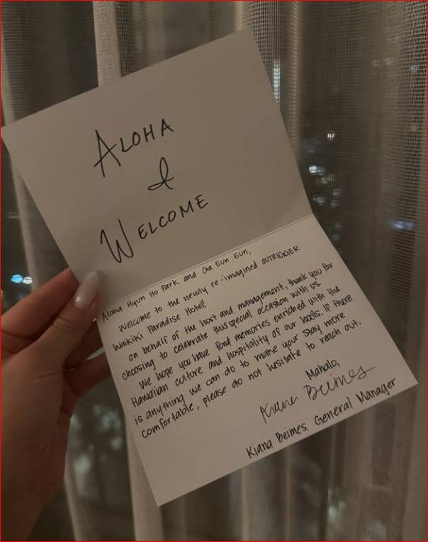 이들이 머문 곳은 하와이 와이키키 해변 중심에 위치한 아웃리거 와이키키 파라다이스 호텔(Outrigger Waikiki Paradise Hotel) 로 알려져 있으며, 신혼부부뿐만 아니라 가족 단위 여행자, 커플 여행객들에게도 인기가 높은 숙소입니다.