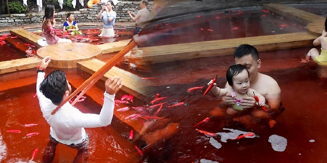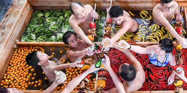 중국 호텔의 파격 마케팅, 훠궈 온천탕 등장