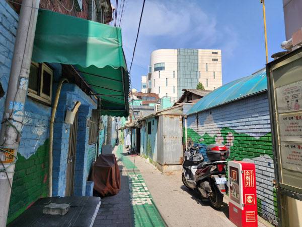 골목 끝 지점 업소들엔 ‘임대 문의’라는 글자와 전화번호가 붙어 있었다. 암막커튼 사이로 보이는 의자와 내부 집기엔 먼지가 수북이 쌓여 있었다. 한 업소 창가엔 성매매 여성 생존권을 보장해달라는 팻말이 붙어 있었다. 인근 주민 A씨는 “청량리588이 사라졌듯 이곳도 개발이 확정된 만큼, 점점 문을 닫는 추세”라고 귀띔했다.