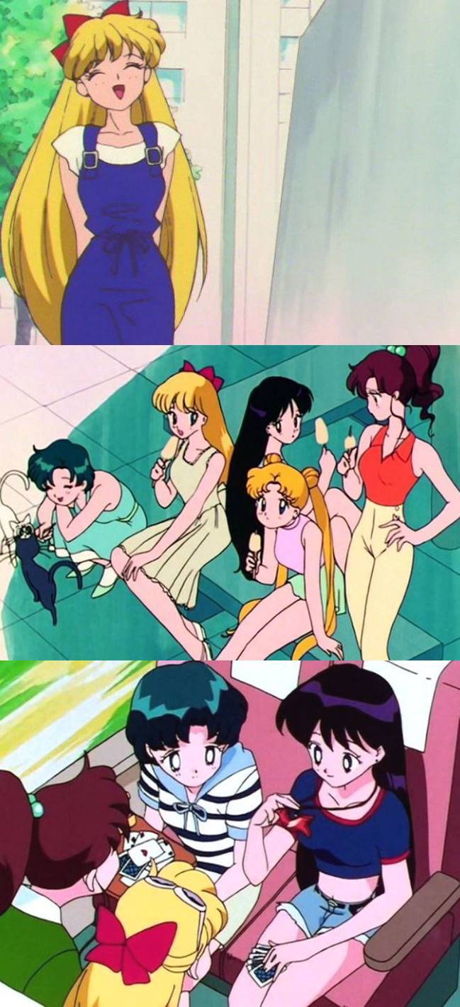 1992년에 방영된 ‘달의 요정 세일러문’. 30년 가까운 시간이 흘렀지만 크롭티, 반바지, 멜빵바지, 나시와 하이웨이스트 팬츠 같은 요즘 옷들이 자주 등장한다.