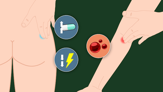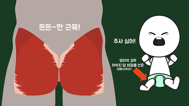 엉덩이나 위팔에 주사하는 경우 보통은 근육주사인데, 왜 같은 근육주사임에도 때에 따라 놓는 부위가 다른 걸까요?