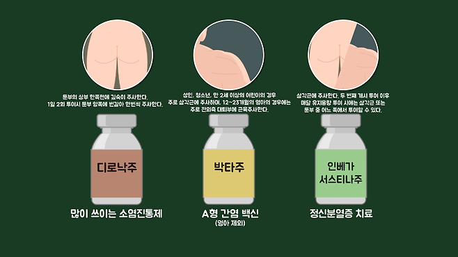 엉덩이나 위팔에 주사하는 경우 보통은 근육주사인데, 왜 같은 근육주사임에도 때에 따라 놓는 부위가 다른 걸까요?