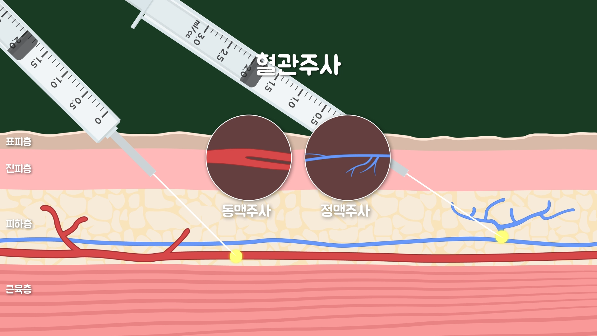 근육주사는 근육에 놓는 주사로 우리가 흔히 맞는 주사입니다. 그리고 혈관주사는 동맥주사와 정맥주사가 있습니다. 주제의 내용은 근육주사와 관련 있습니다.