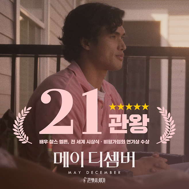 아카데미 시상식에 노미네이트된 화제작 <메이 디셈버>의 한국계 할리우드 배우 찰스 멜튼이 전미비평가협회를 포함하여 전 세계 연기상 21관왕을 달성하며 전 세계 영화팬들의 시선을 사로잡고 있다.