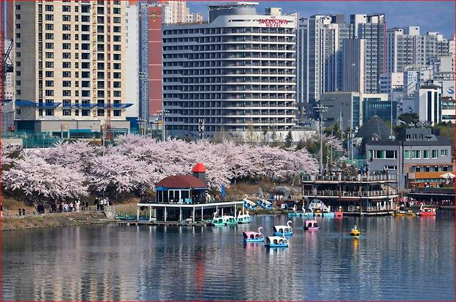 주요 포인트: 벚꽃 터널 산책로, 사이로 248 출렁다리, 오리배 선착장, 조각공원