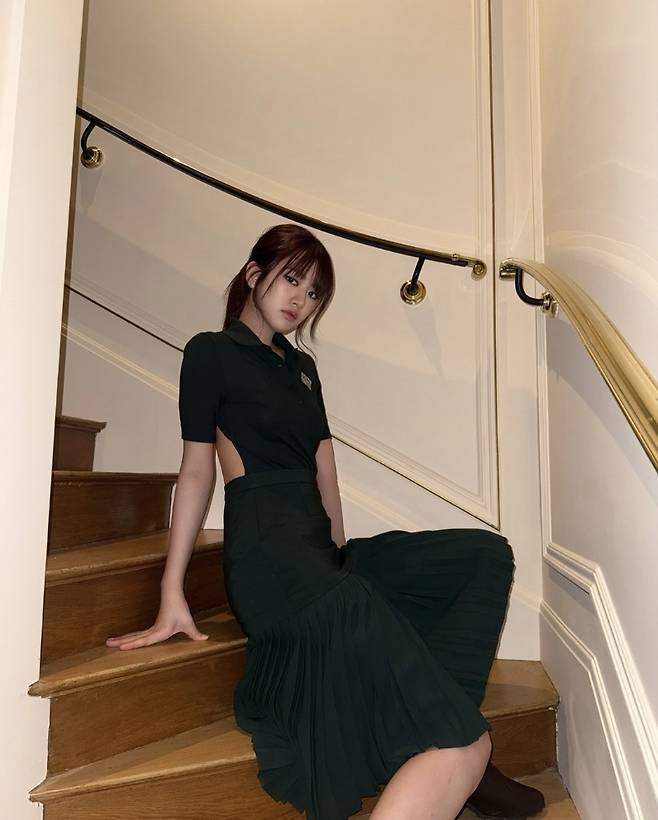 특히 안유진은 계단 위에서도 자연스럽게 늘어진 실루엣과 긴 플리츠 디테일이 우아함을 강조해 전체적인 룩의 밸런스를 완벽하게 맞췄습니다.