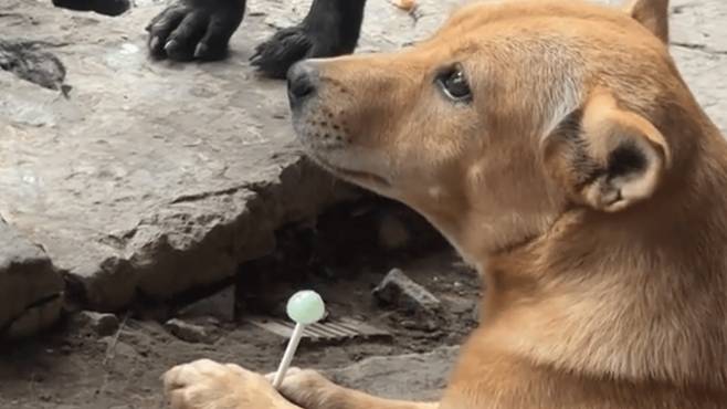 이 네티즌은 강아지가 막대사탕을 마치 귀한 보물처럼 소중하게 먹는 특별한 장면 덕분에 하루가 즐거워졌다고 합니다!