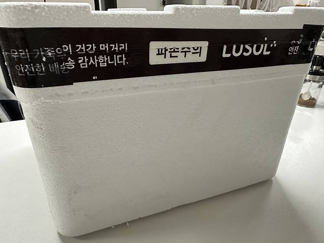 택배로 냉동식품을 받으면 이렇게 스티로폼 박스를 받게 됩니다.