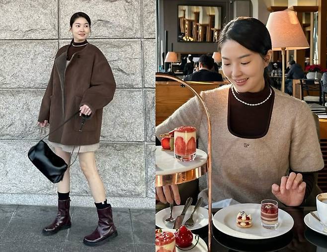 류이서는 브라운 시어링 코트를 중심으로 한 고급스러운 캐주얼 룩을 선보이며 계절감을 살린 스타일을 완벽히 소화했습니다.