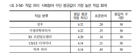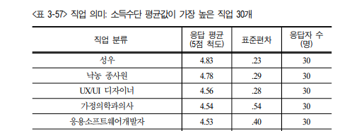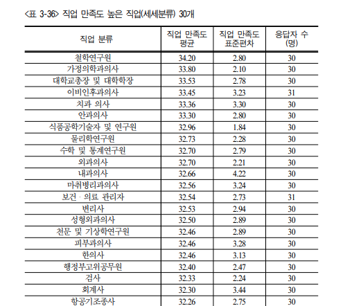 1위 철학연구원, 2위 가정의학과의사 3위 대학교총장