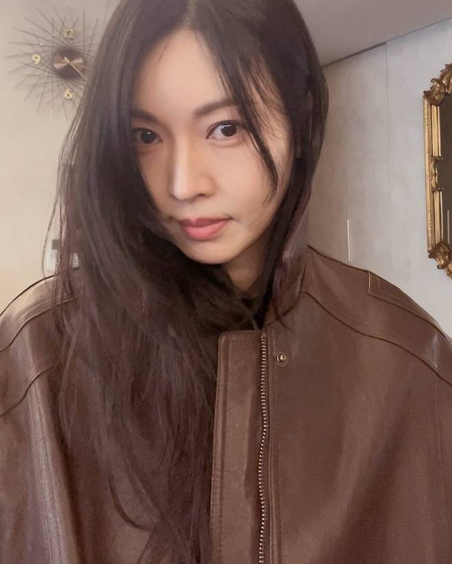 사진 속 김소연은 브라운 레더 자켓을 입고 화장기 없는 청순한 미모를 뽐내고 있습니다.