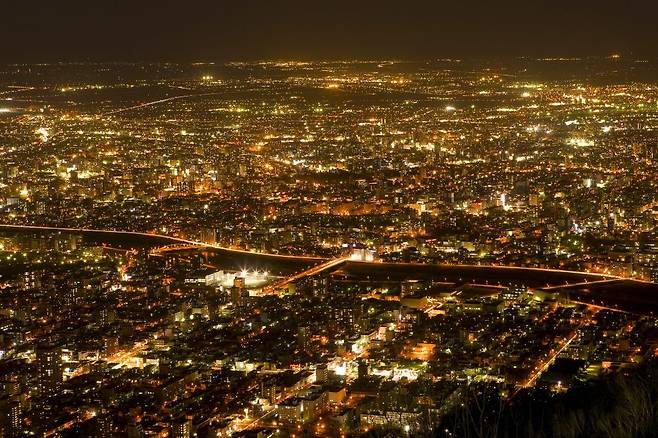 일본 3대 야경으로 선정된 삿포로 야경 명소 모이와 산. 겨울에 더욱 운치 있는 모습을 보여주는 삿포로 관광 명소의 필수라고 할 수 있죠. 해발 531m의 모이와 산 정상에서 내려다보는 시내의 야경은 하얀 눈과 어우러져 마치 다이아몬드를 뿌려놓은 듯한 환상적인 풍경을 연출해요.