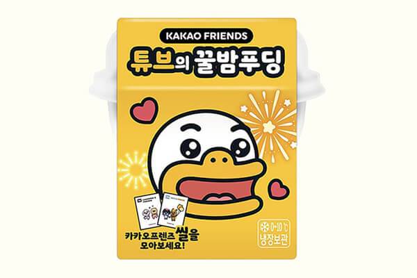 편의점 CU는 카카오프렌즈 IP를 활용한 푸딩 신제품 ‘튜브의 꿀밤푸딩’을 판매하고 있다. 롯데웰푸드가 생산하는 제품으로, 달콤한 푸딩과 함께 카카오프렌즈 띠부씰을 획득할 수 있는 제품이다. 부드러우면서도 밤의 은은한 달콤함을 품고 있는 푸딩으로, 흔히들 본 제품을 달콤한 바밤바를 푸딩으로 만든 것 같다고 묘사하고는 한다. 먹기 편하도록 플라스틱 스푼과 함께 제공된다. 가격은 3,500원이다.