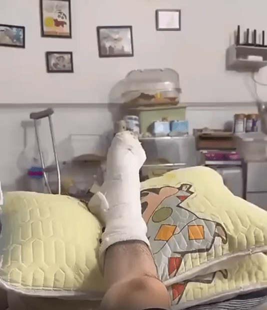 실내 소파 위에 남성 한 명이 다리를 다친 듯 큰 베개 위에 다리를 올려둔 채 누워 있습니다. 하얀 기브스가 감긴 다리와 조용한 분위기 속에서, 영상은 잠시 정지된 듯 고요하게 흐르죠. 그러다 카메라가 천천히 옆으로 움직입니다. 화면에 새롭게 들어온 장면은 예상치 못한 반전의 순간을 선사합니다.