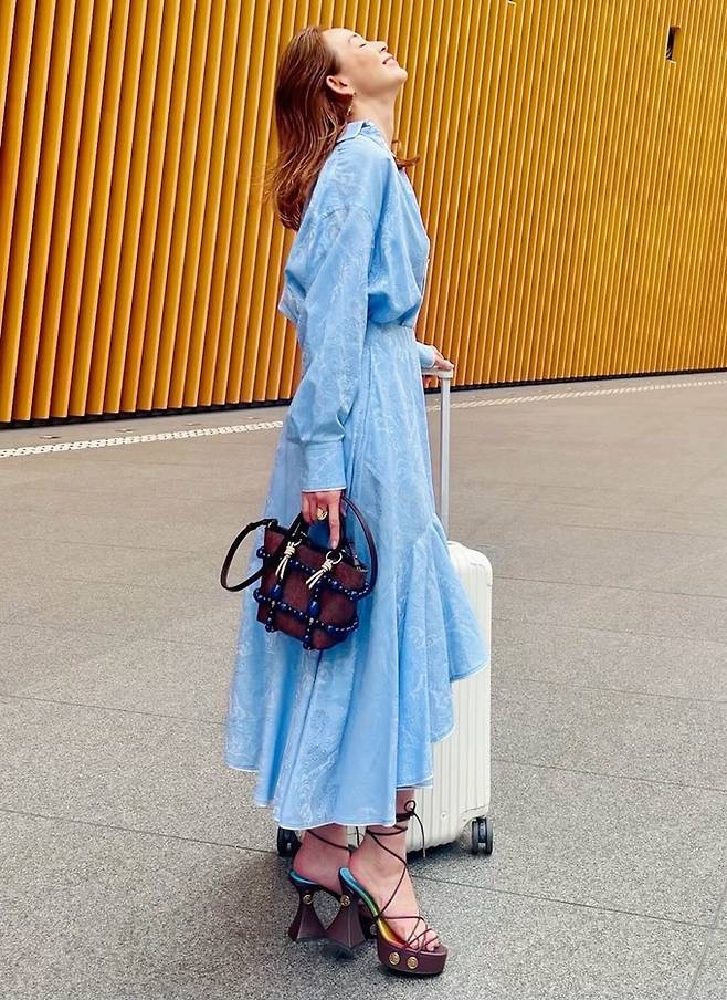 추성훈의 아내이자 일본 톱모델 야노시호가 가방까지 챙긴 스타일리시한 여행룩으로 눈길을 사로잡았다.