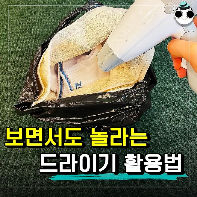 그냥 나가자니 축축해서 찝찝하고 또 마르길 기다리자니 시간이 급하고~ 이럴 때는 비닐봉지와 수건 그리고 헤어 드라이기만 있으면 문제 해결이랍니다.