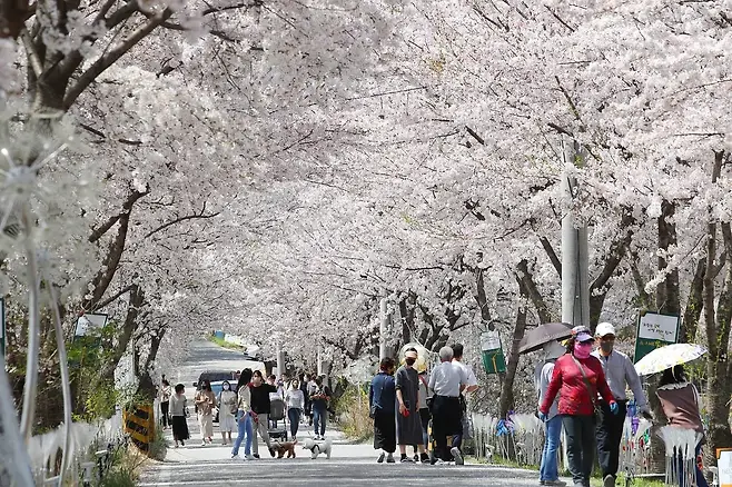 대청호 오백리길은 약 220km에 달하는 대규모 코스로, 이 중 약 26.6km 구간이 벚꽃으로 뒤덮여 “세상에서 가장 긴 벚꽃길”이라는 별칭을 얻었다. 벚꽃이 터널을 이루듯 양옆에 펼쳐져 있어 차창 밖 풍경만으로도 절로 미소가 번진다. 천천히 차를 몰거나 자전거를 타며 바람에 흩날리는 벚꽃을 감상하면, 도심에서는 느낄 수 없는 여유와 낭만을 만끽할 수 있다.