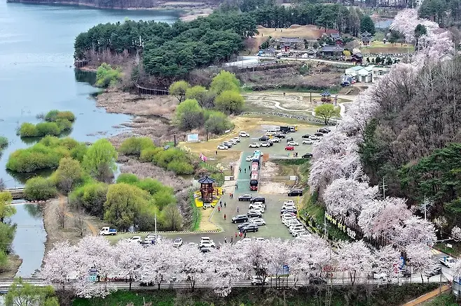 대전광역시 동구에 자리한 대청호는 벚꽃이 만개하는 시기가 오면 한층 더 빛난다. 특히, 이 호수를 에워싼 대청호 오백리길은 국내에서 손꼽히는 길이의 벚꽃길로 유명하다. 해마다 열리는 벚꽃축제와 함께 산책부터 드라이브까지 다채로운 방법으로 벚꽃을 즐기기에 제격이다.