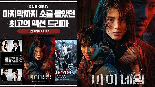 🔪 《마이 네임》아버지를 잃은 윤지우가 범죄 조직과 경찰 사이를 넘나드는 복수극. 여성 주인공의 거침없는 액션과 비극적 결말은 글로벌 시청자를 사로잡으며 83개국 이상에서 넷플릭스 TOP10에 올랐습니다.